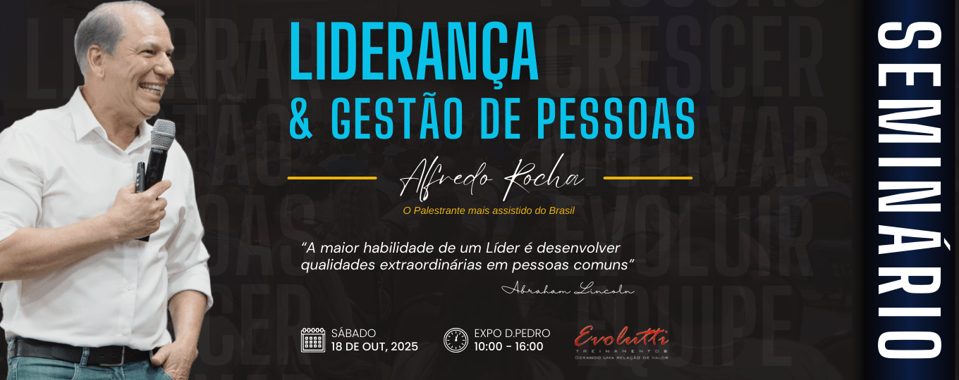 Neste ano de 2024 Alfredo Rocha completa 34 anos de carreira e além de conquistar o título de palestrante mais assistido do Brasil é apontado pelo meio empresarial como um dos melhores Conferencistas da atualidade na área comportamental e motivacional. Mais de 3 milhões de pessoas já o assistiram ao vivo e se surpreenderam ao conhecer de perto as ideias apresentadas por ele, que carrega como pontos fortes a simplicidade, a objetividade, o conteúdo e a descontração. Há vários anos está entre os principais palestrantes mais contratados para eventos empresariais e Seminários ‘’In company’’ pelas principais empresas nacionais e multinacionais.